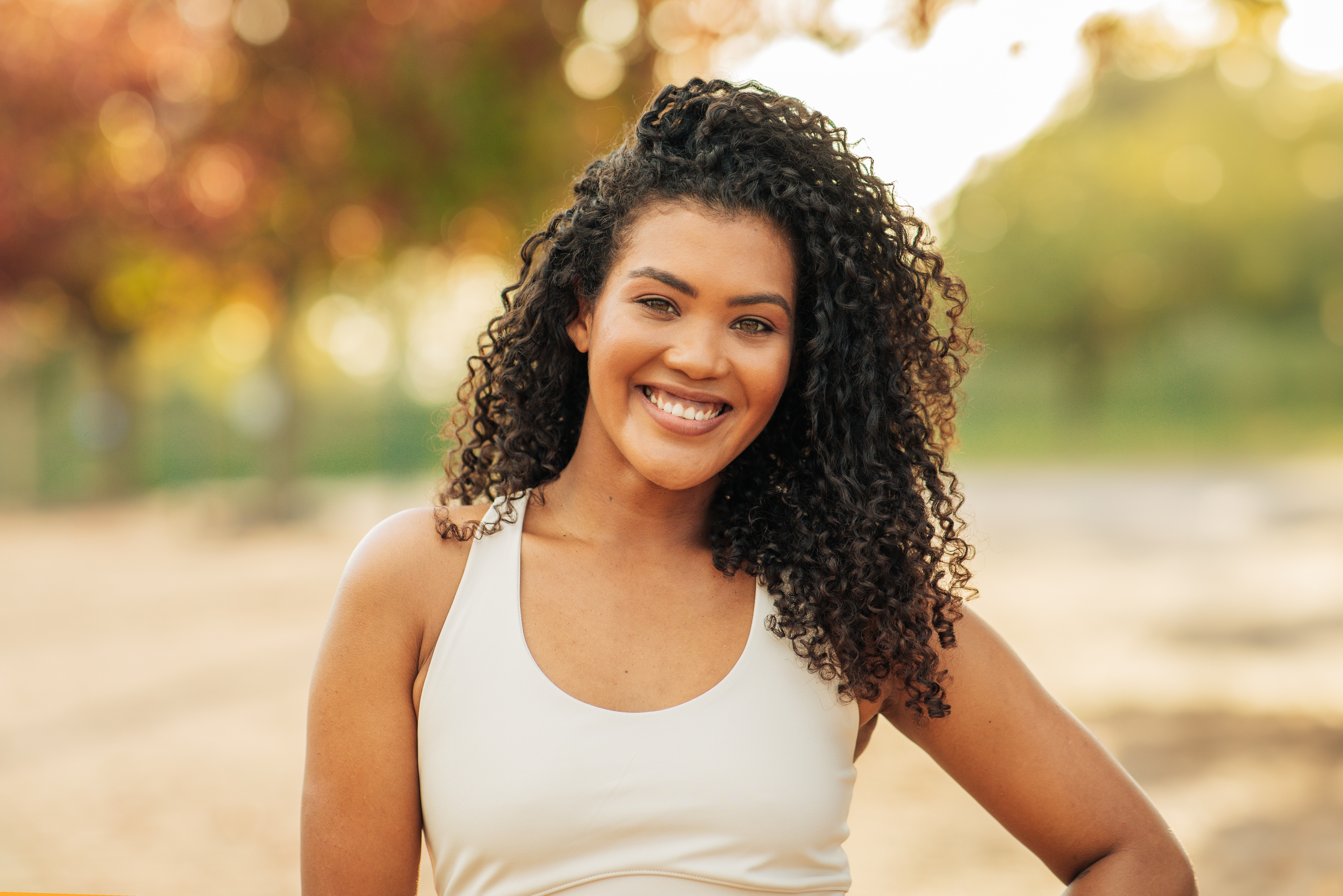 Cachos que mostram seu tamanho real criam uma estética imponente. Eles se movimentam, ocupam espaço e reforçam a ideia de cabelo forte, saudável e cheio de personalidade.