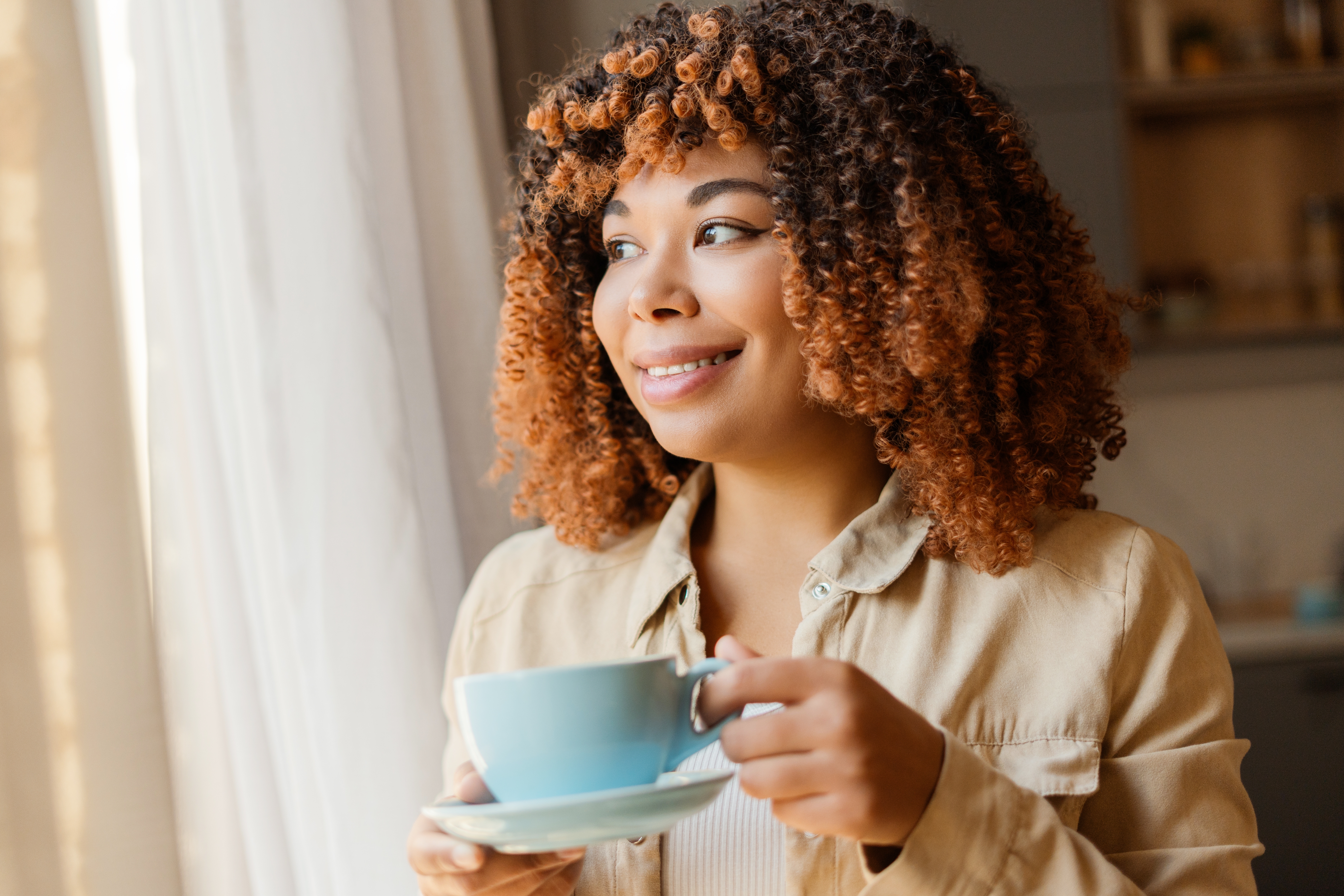 O acobreado ilumina sem necessariamente puxar para o loiro. É quente, vibrante e pode deixar o visual mais sensual e marcante. Quando combinado com caramelo ou dourado, cria uma iluminação rica, com muita dimensão, e em cabelos cacheados isso aparece de um jeito lindo, principalmente quando os fios estão bem hidratados.